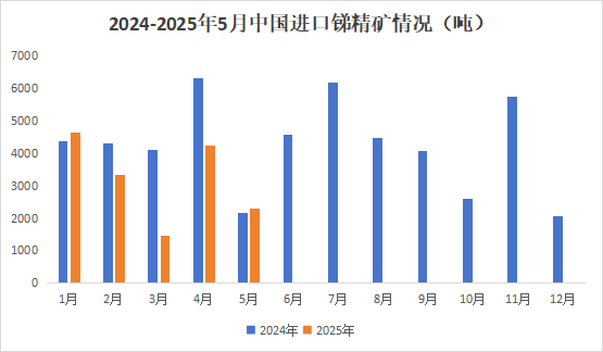 一、5月我国锑精矿进口量环比下降